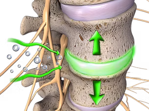 Alle diese Aspekte werden bei der Dekompression adressiert: Durch subtil dosierten, aber dennoch sehr kräftigen regelmäßigen Längszug an den Bewegungssegmenten im Wechsel mit sensorgesteuerten Entlastungsphasen entsteht in den Bandscheiben ein hoher Unterdruck. Die Regeneration wird unterstützt oder überhaupt erst angeregt. Die Segmente werden von Behandlung zu Behandlung beweglicher.